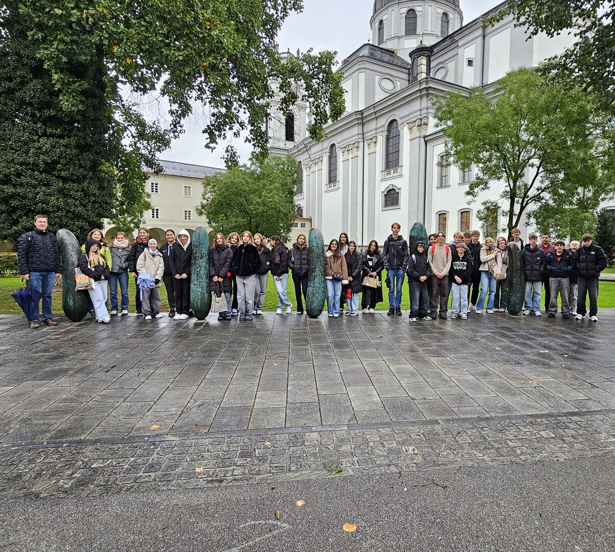 Der Vormittag begann mit einer Stadtwanderung, bei der verschiedene Sehenswürdigkeiten besichtigt wurden. Trotz leichten Regens ließ sich die Klasse die gute Stimmung nicht nehmen. Besonders eindrucksvoll war der Besuch der Universitätskirche sowie des Marmorsaals, der als einer der schönsten Trausäle gilt.