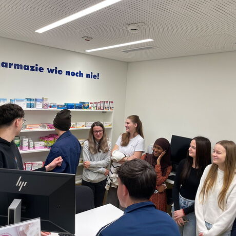 Der Besuch begann in einem großen Hörsaal mit einem inspirierenden Vortrag des Rektors, der Einblicke in die Entstehung der Universität sowie in die zentralen Leitwerte ihrer Forschung gab. Anschließend folgte eine praxisnahe Einführung in ausgewählte Teilgebiete der Pharmazie durch den Studiengangsleiter des Instituts für Pharmazeutische Technologie.