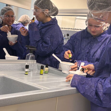 Abgerundet wurde der Vormittag durch eine Führung durch die hochtechnologischen Laborräume und Lehrsäle der Universität sowie einen praktischen Workshop. Dabei hatten die Schülerinnen und Schüler die Möglichkeit, selbstständig eine Handcreme herzustellen und pharmazeutische Kapseln zu produzieren.