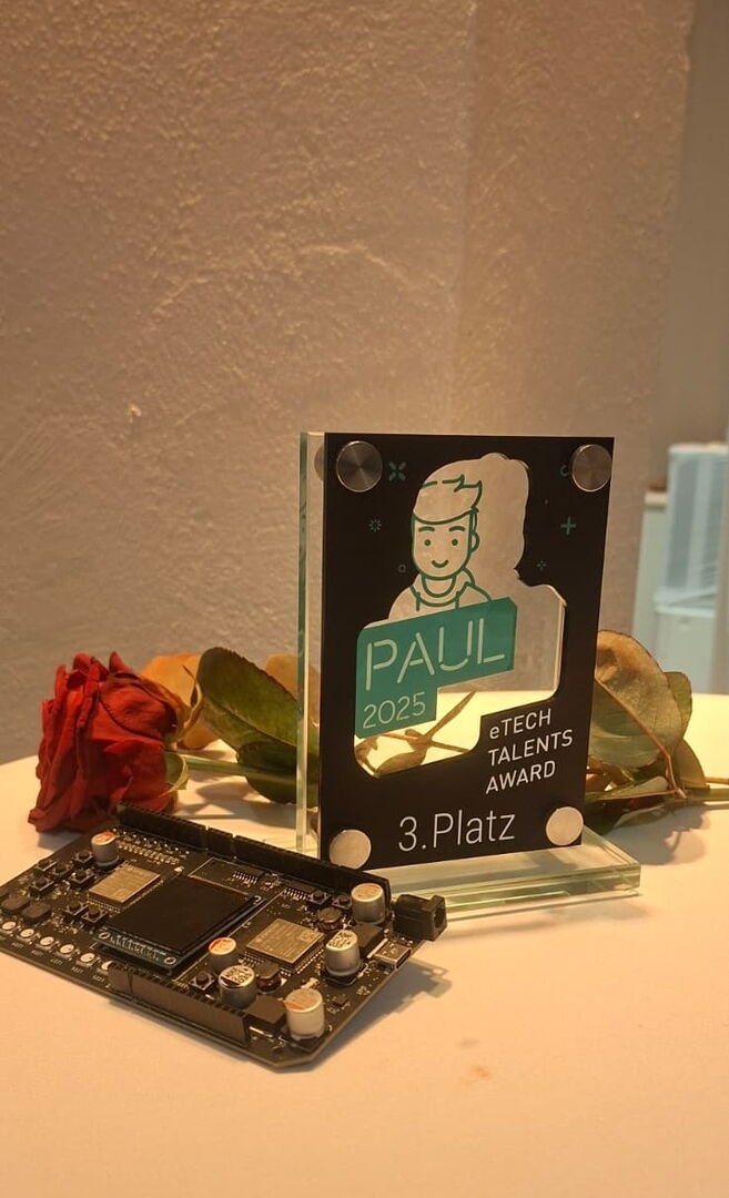 Beim PAUL Award Finale am 5. Dezember 2025 in Berlin überzeugte David Vacaroiu, Schüler der 4AHEL die internationale Fachjury und erreichte den 3. Platz, der mit einem Preisgeld von 1.000 Euro dotiert ist. Der PAUL Award, benannt nach dem Leiterplatten-Erfinder Paul Eisler, zählt zu den renommierten Nachwuchswettbewerben für junge Elektronik-Talente und zeichnet innovative technische Projekte aus.
