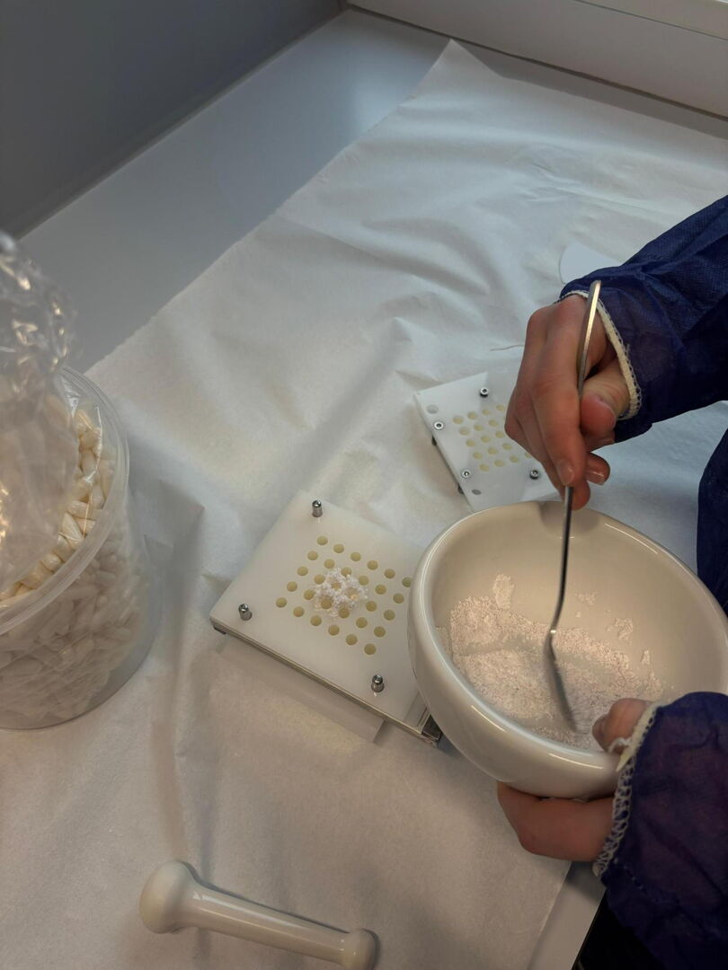 Besonders interessant war der praktische Teil am Ende der Führung: Wir durften selbst Kapseln mit Staubzucker und Brausepulver herstellen und außerdem eine eigene Handcreme anrühren. Dabei hatten wir sehr viel Spaß, und es war eine tolle Erfahrung, das Pharmazie-Studium einmal so praktisch und anschaulich kennenzulernen.